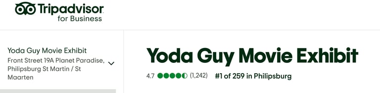 "This was the highlight of our visit to St. Marteen. Nick, the YodaGuy, is there personally and was delightful to talk to. His first hand accounts of his work on Star Wars and other great films were a treasure. His museum is a one-of-a-kind collection of movie memorabilia, original movie props, scripts, storyboards and more that you won't find anywhere else. So thankful that we took the time to visit. Thank you Nick!"